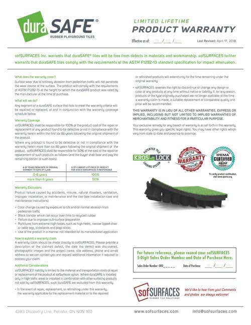 Although you’ll probably never need to use it, you can take comfort in knowing that you’re protected by the industry’s best warranty—backed by sofSURFACES, the leading manufacturer of high-performance playground surfacing.