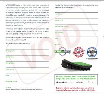 Da biste SofSurfaces jamčili web-lokacije koje instalirate, morat ćete dostaviti sljedeće dovršene dokumente po završetku svakog projekta.