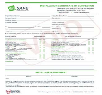 Potvrde o završetku moraju se ispuniti s kupcem tijekom prolaska na licu mjesta. To ukazuje da vjeruju da je rad zadovoljavajući i označava njihovo prihvaćanje krajnjeg proizvoda koji ste im pružili. To je potrebno dovršiti na licu mjesta nakon svake instalacije i dostaviti SofSurfaces prije isporuke jamstvenih certifikata